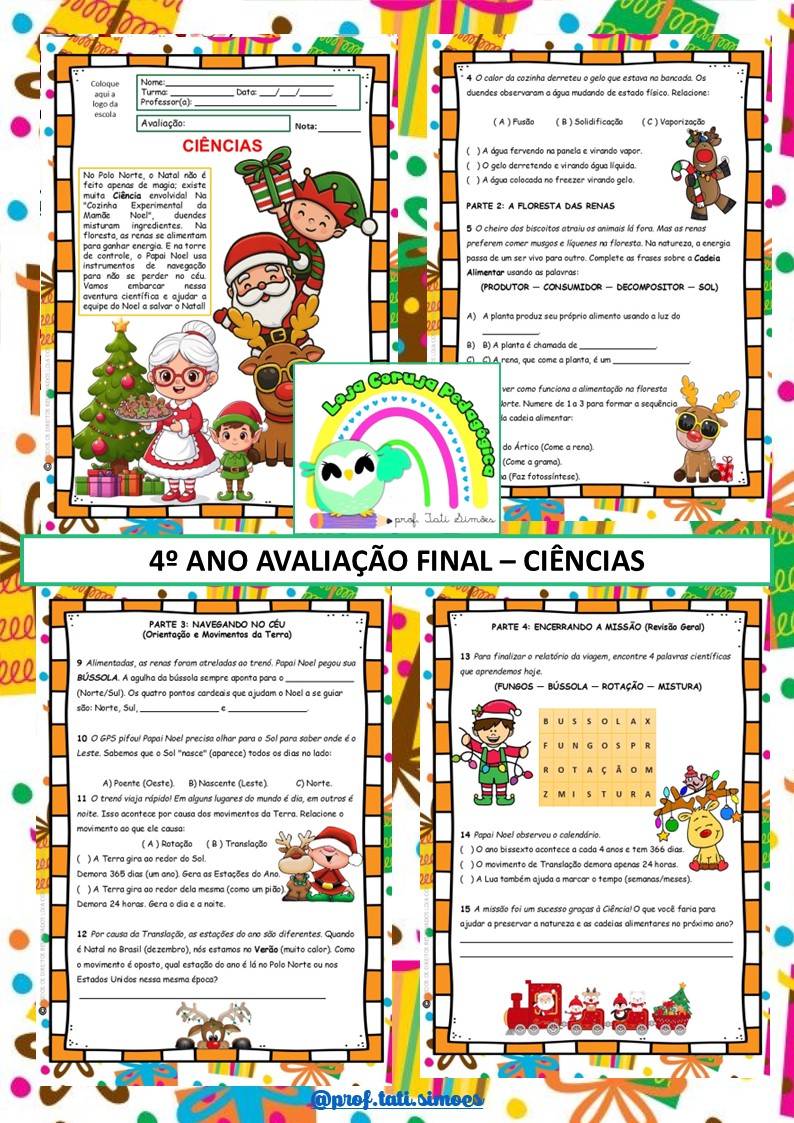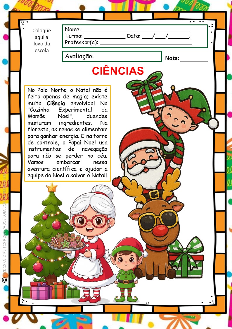 Transforme a avaliação final do ano em uma missão científica cheia de magia! Nesta atividade temática, seus alunos embarcam numa jornada pelo Polo Norte para ajudar o Papai Noel, os duendes e até as renas.