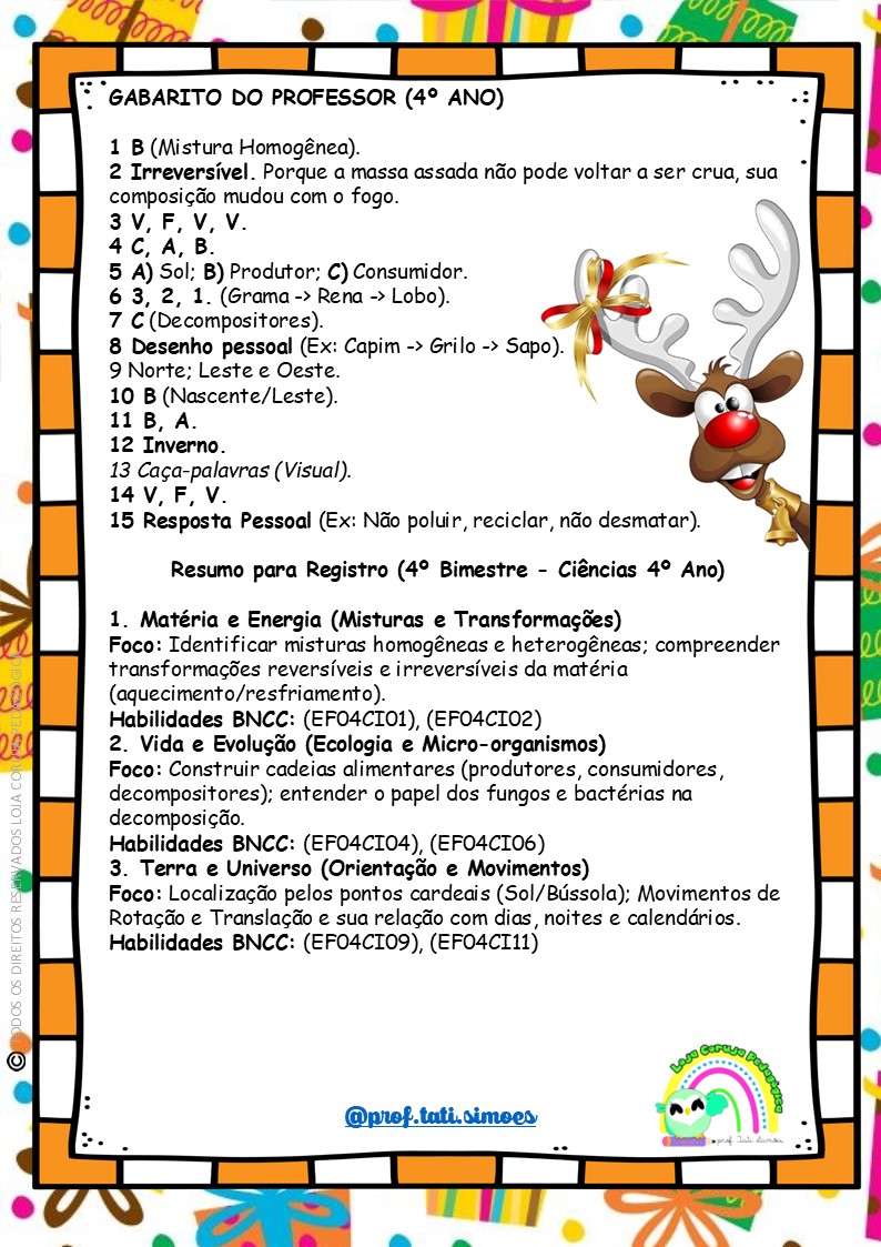 🎄 Avaliação de Ciências 4º Ano – 4º Bimestre