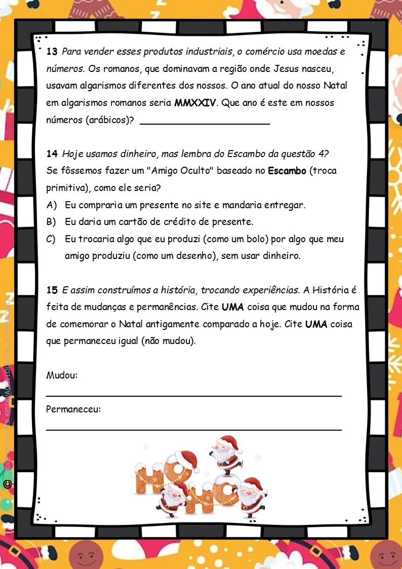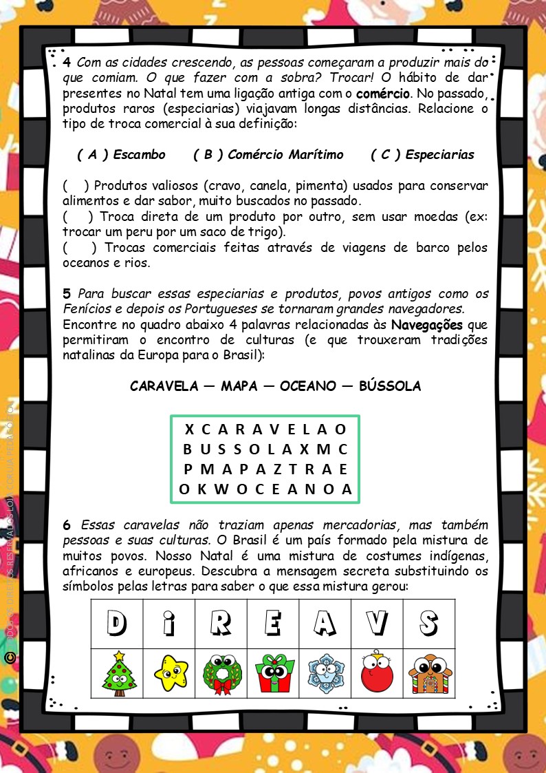 ✔ Tema natalino trabalhado dentro dos conteúdos históricos, sem perder rigor pedagógico