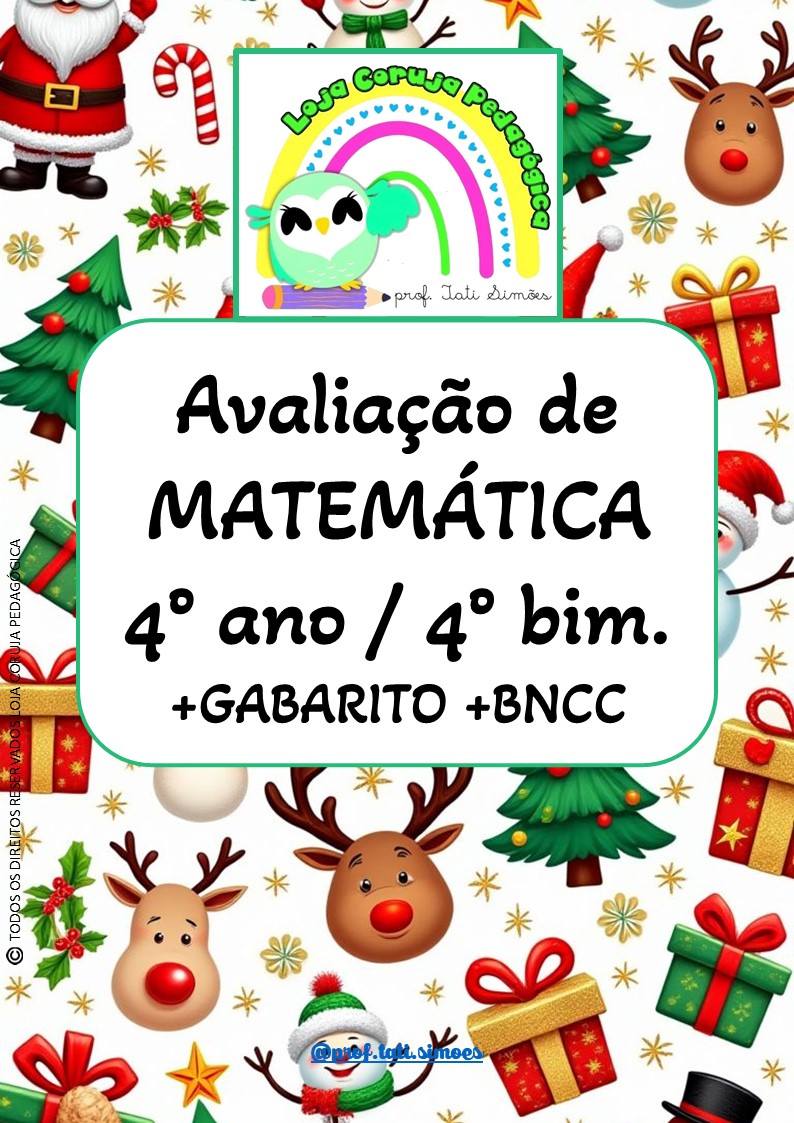 🧡 4º ano, avaliação de matemática, 4º bimestre, avaliação final, atividades 4º ano matemática, medidas, unidades de medida, avaliação BNCC, Papai Noel matemática, atividade natal 4º ano, avaliação pronta para imprimir.
