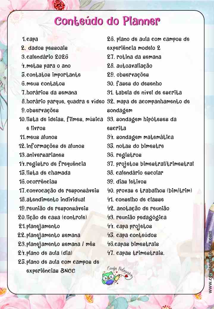 ✨ Transforme seu planejamento escolar em 2026 com Coruja Floral ROSA Planner e Caderno de Planejamento para professores 2026 – um material completo, prático e moderno, criado para facilitar a rotina de educadores da Educação Infantil ao Fundamental 2.