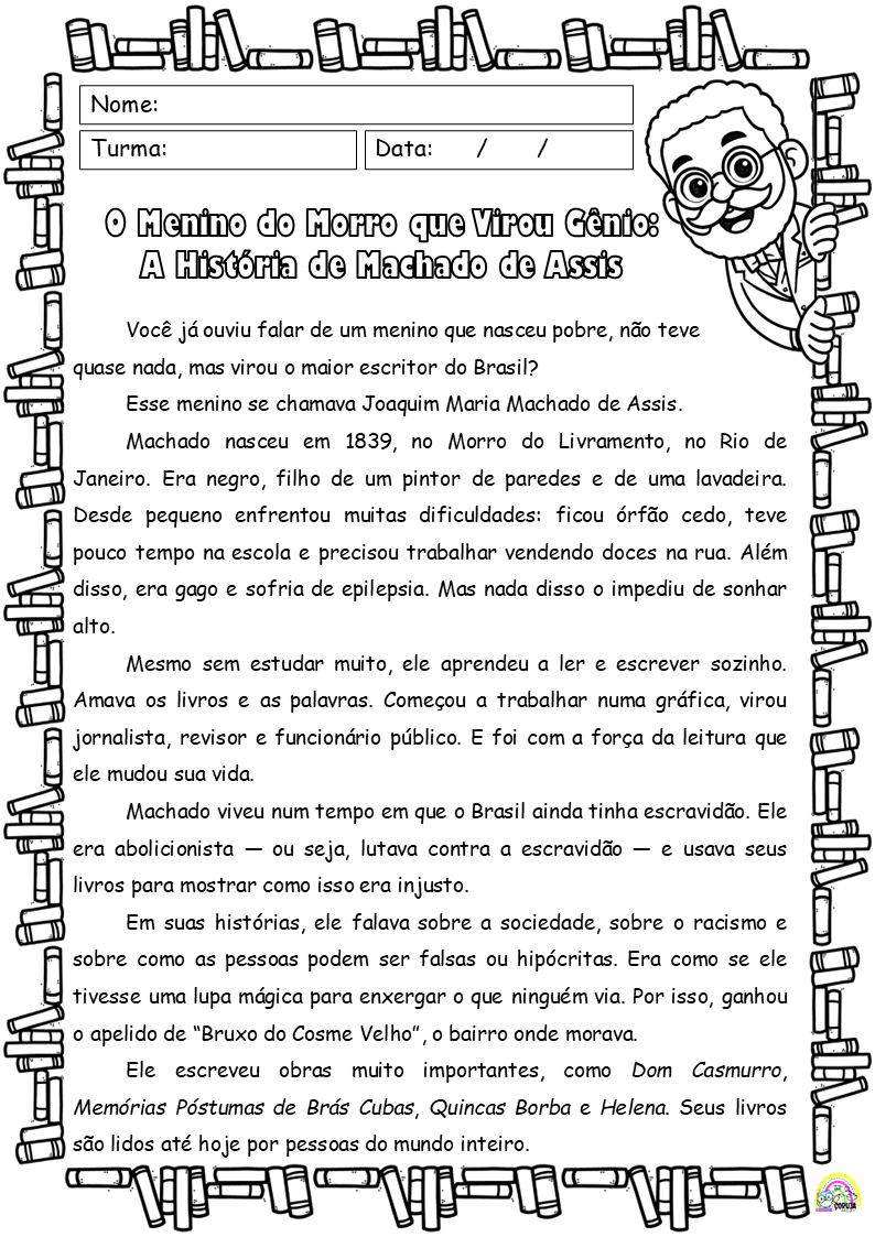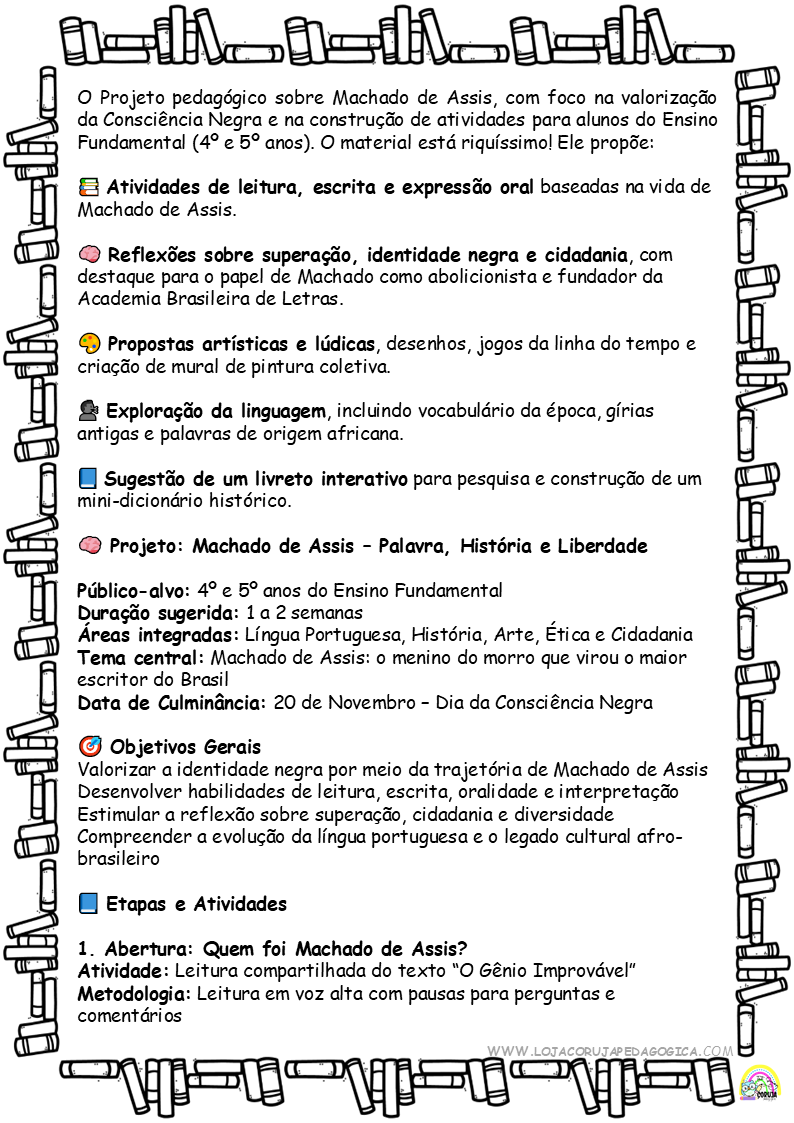 Este material é mais que uma sequência de atividades: é um convite para formar leitores críticos e conscientes, valorizando a genialidade de quem transformou a palavra em poder.