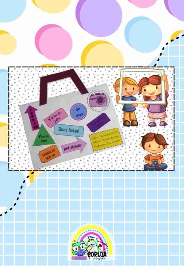 A proposta é simples e encantadora: a criança pode montar suas memórias de férias (se a atividade for feita após o retorno às aulas) ou planejar o recesso (se feita antes).